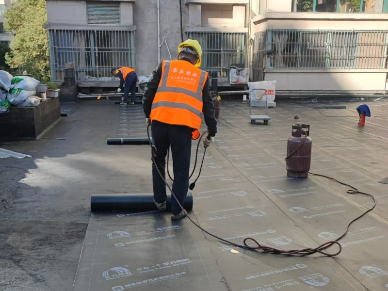 卷材防水施工现场