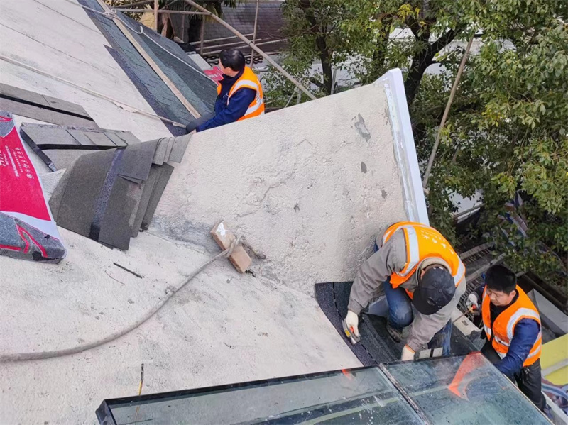 居委会屋顶施工现场